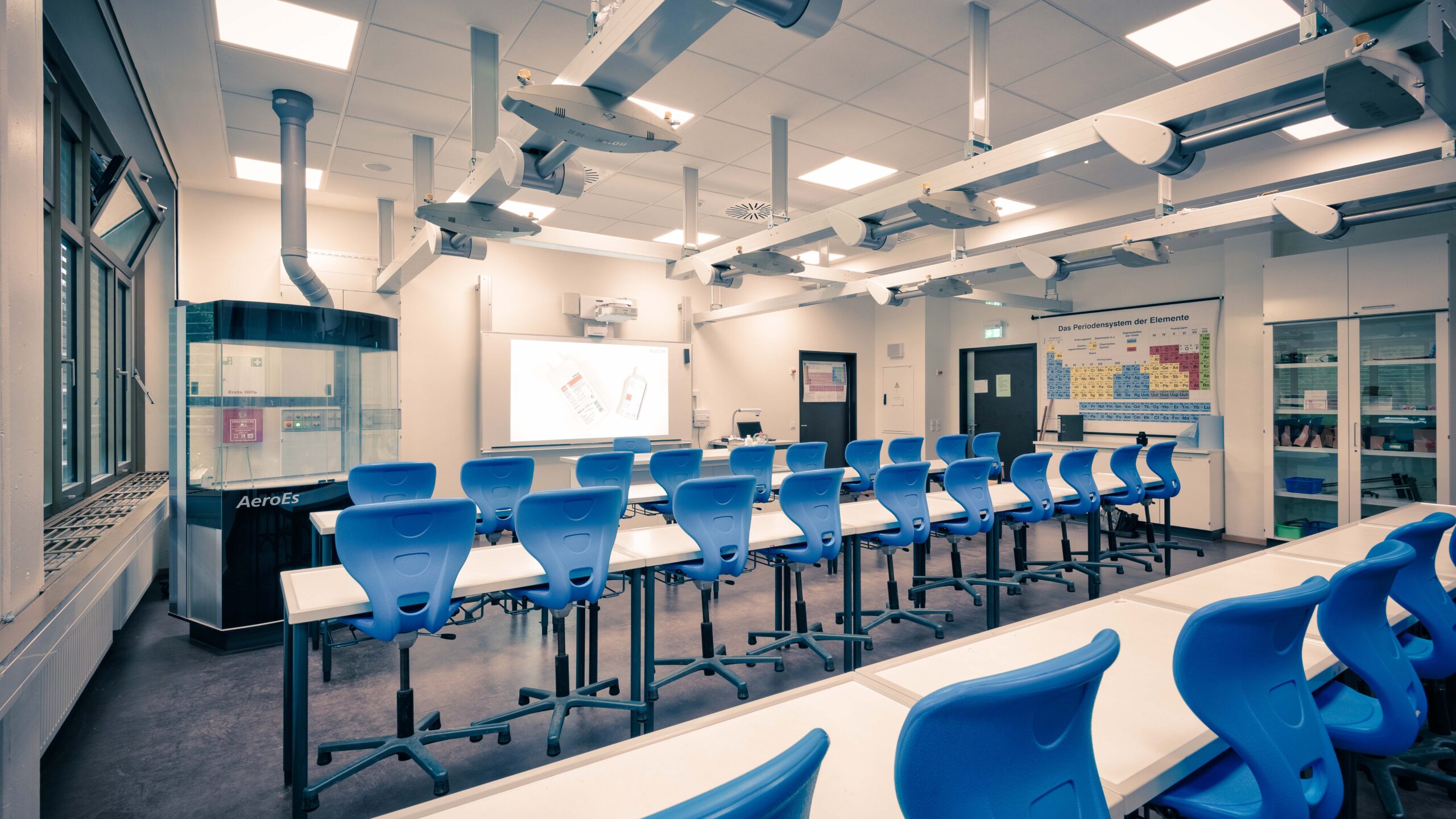 Die Ausstattung unserer Fach- und Klassenräume ist auf modernstem Stand. Digitale Tafeln (C-Touch) stehen in jedem Klassenraum zur Verfügung und können zu multimedialer Präsentation und Erarbeitung von Inhalten genutzt werden. Fachräume sind, z.B. in den Naturwissenschaften, mit zeitgemäßer Technik ausgestattet, die auch anspruchsvolle Versuche ermöglichen.