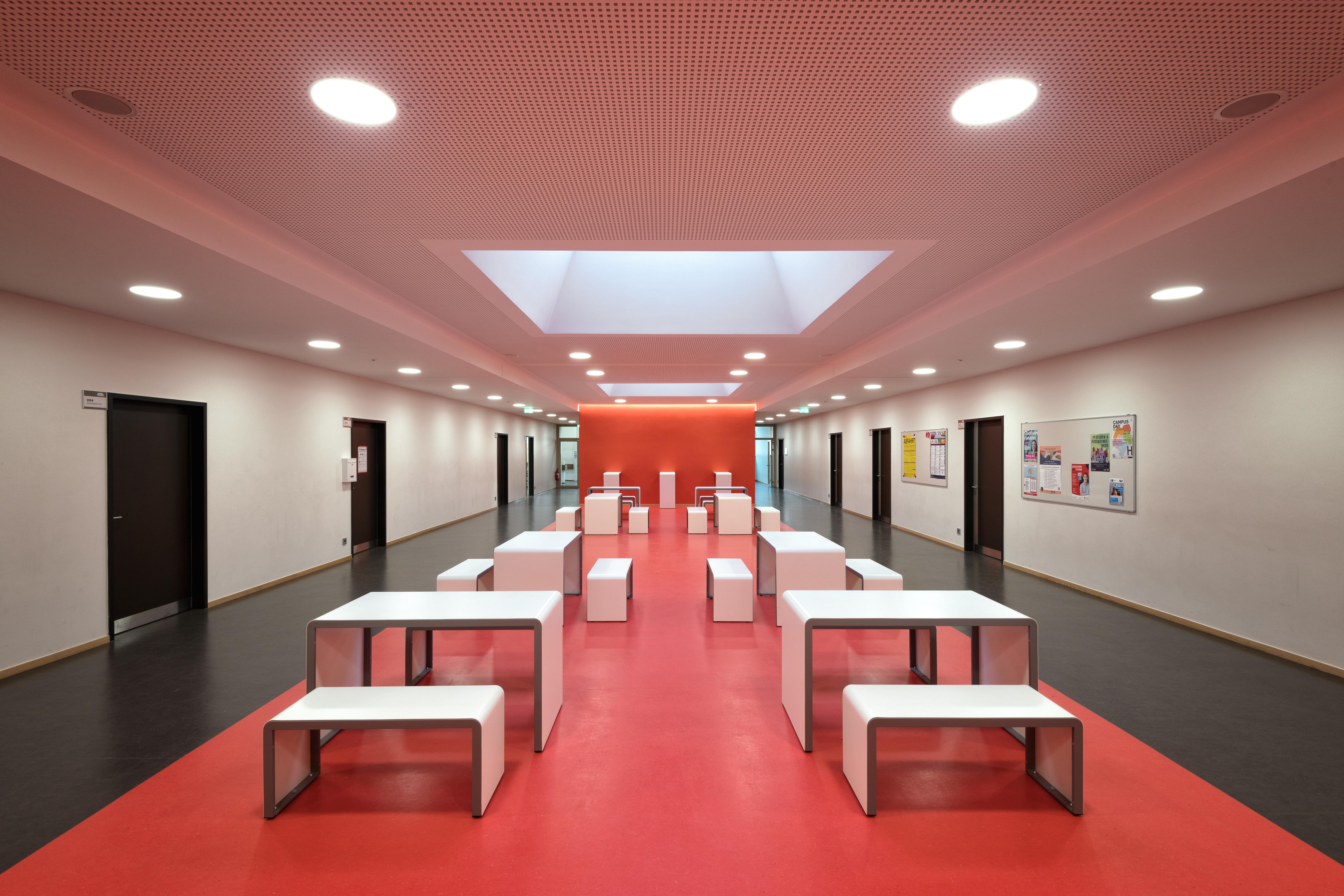 Helle Flure und moderne Begegnungszonen bestimmen das Bild im sanierten Hauptgebäude.